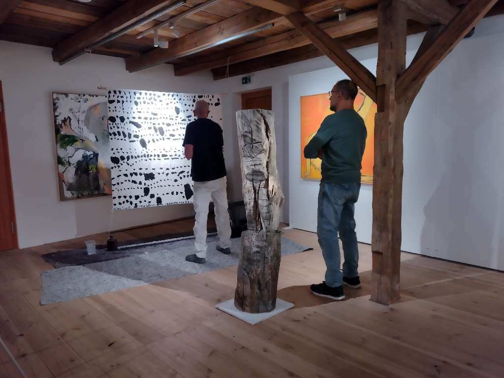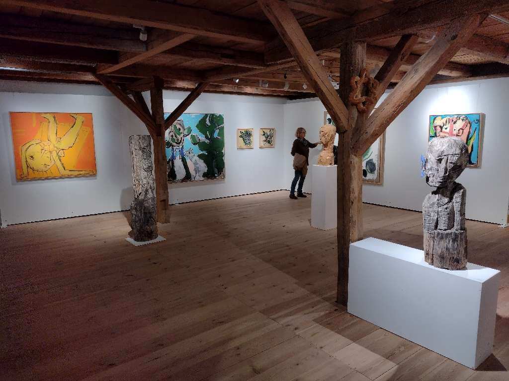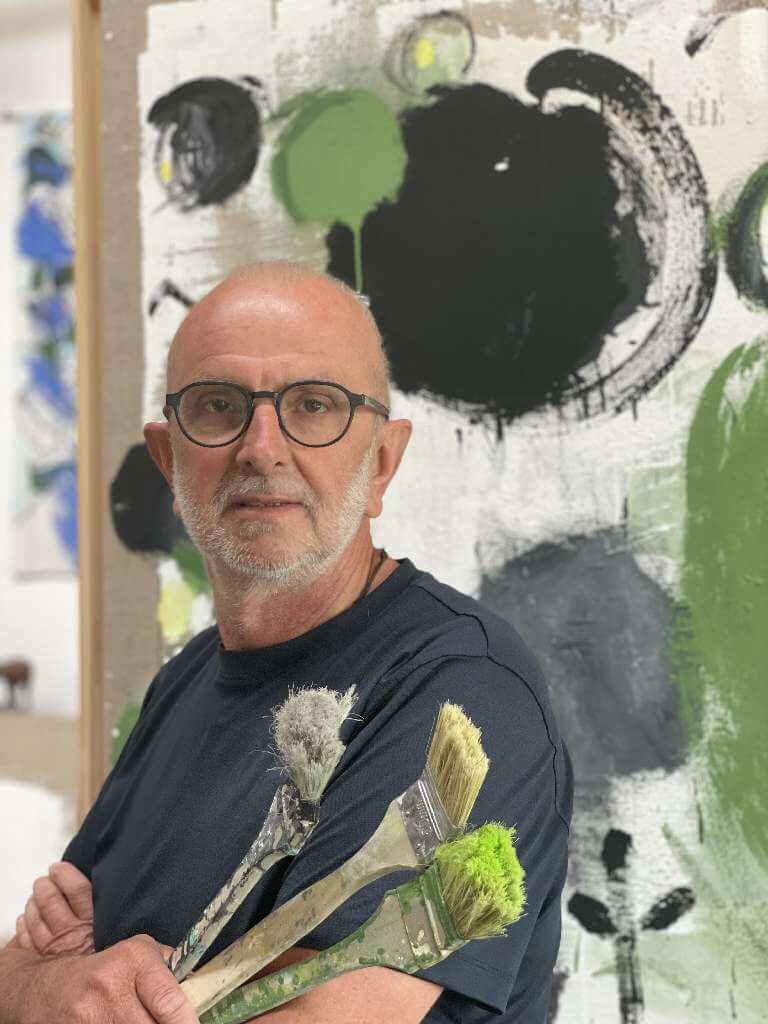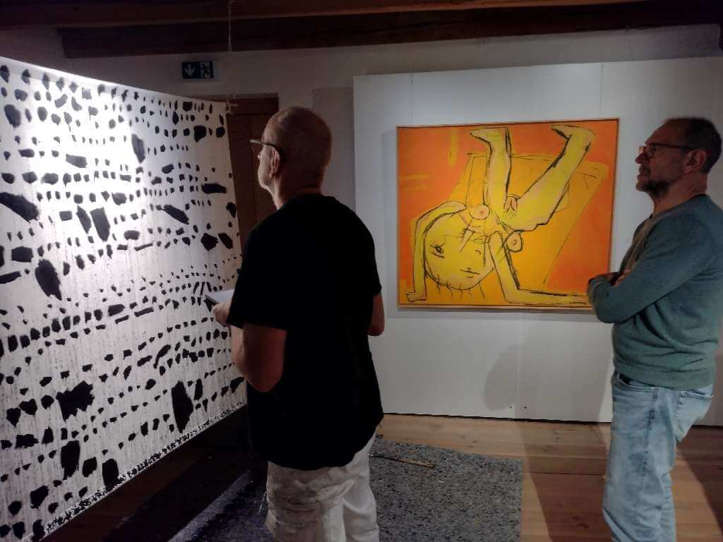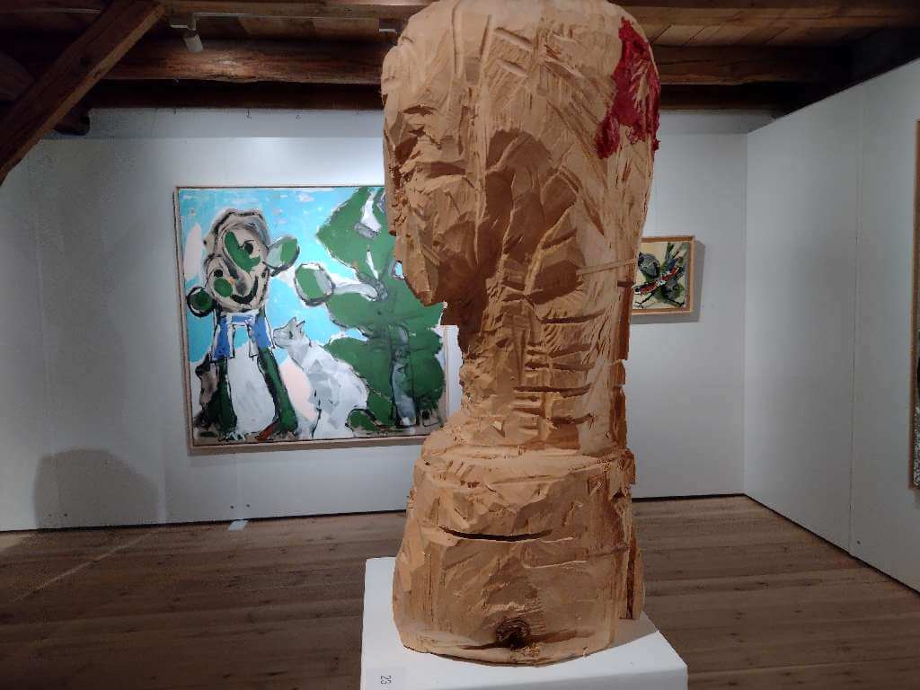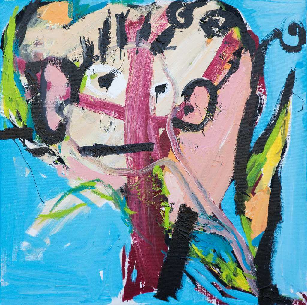 Grob und rau mit Malerpranke schnell und spontan hingefetzt, hingekritzelt, manchmal wie von ungelenker Kinderhand, unfertig wirkend als fertiges Bild, begegnen uns die Bilder von Leo Schötz. Der Malgestus ist oft wichtiger als das aus dem Chaos auftauchende Motiv z.B. eines Vogels, eines Kopfes.