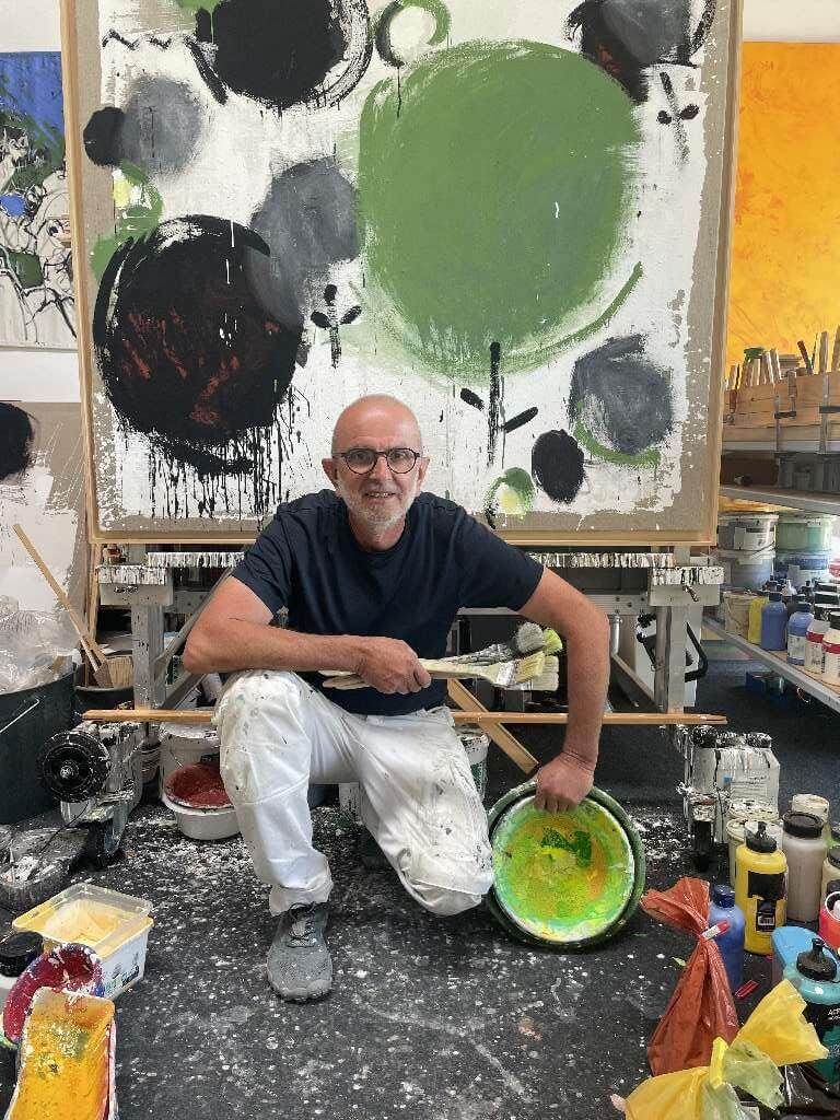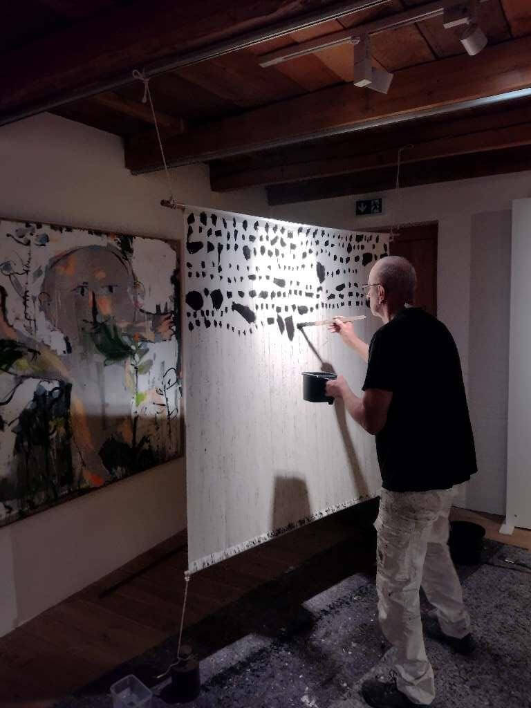 Leo Schötz beschreibt seinen Arbeitsprozess folgendermaßen: „In meinem Atelier sind stets mehrere, bis zu zehnLeinwände gleichzeitig in Bearbeitung, ich gehe von Leinwand zu Leinwand und nehme Eingriffe vor, die mitunter radikal im Ausmaß sind. Große Partien werden häufig wieder entfernt, um neuen Strukturen und Gesten Platz zu machen. Es ist ein Bildfindungsprozess, dieser wird so lange vorangetrieben und das Motiv wird so lange bildnerisch beatmet, bis das Bild als eigenständiges Organ/Wesen selbst zu atmen in der Lage ist. Malen ist wie unbekannte Samen in die Erde zu stecken, die Leinwand so lange zu gießen und wie ein ungeduldiges Kind das Sprießen nicht erwarten zu können, und meistens ist das Unkraut schöner als die Saat“